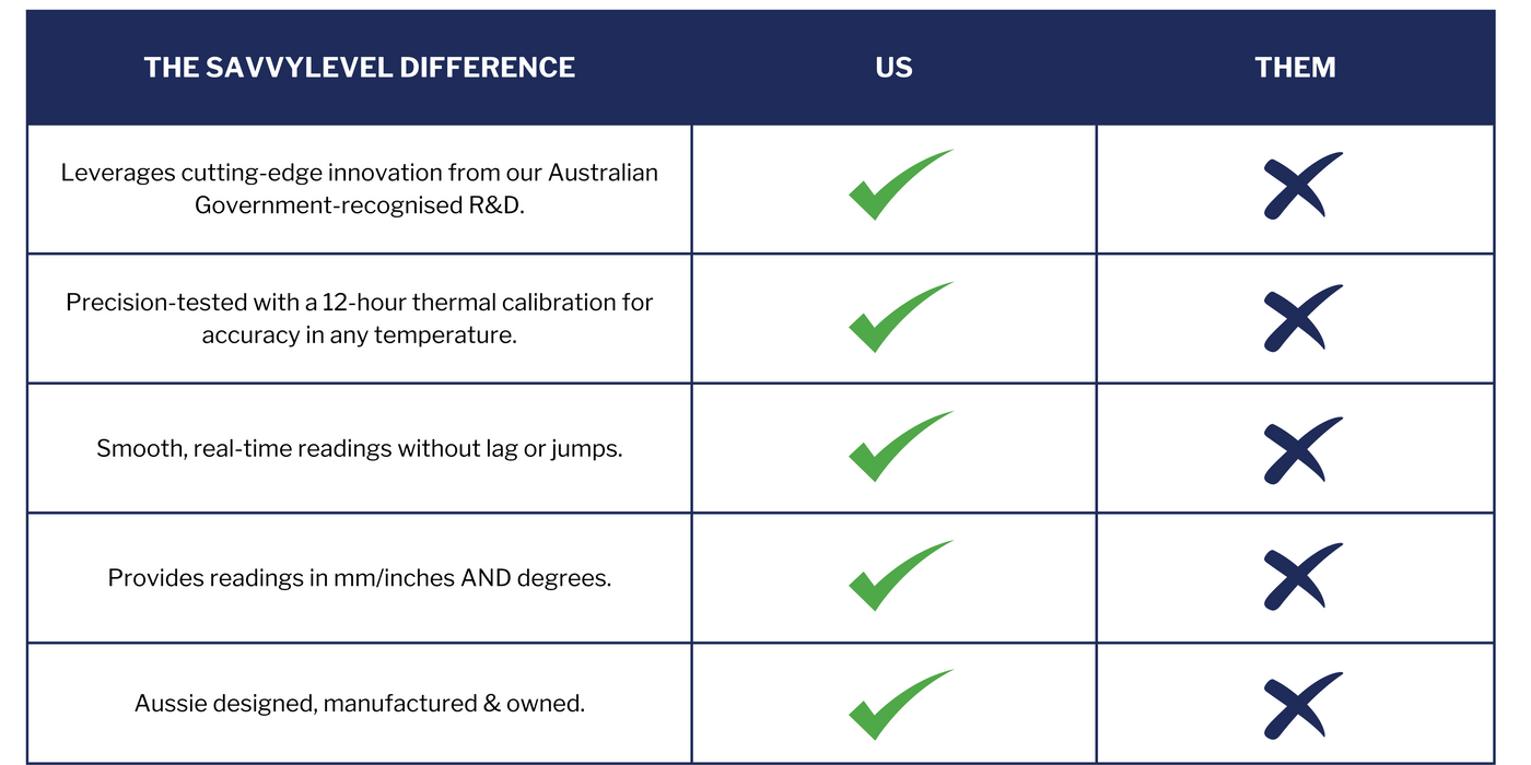 Fed up with other poor quality, unreliable levelling devices, Patrick, an expert engineer, took matters into his own hands. Handcrafted to ensure the highest level of precision and using cutting-edge technology from his standalone Research & Development business, he created the ultimate levelling solution- SavvyLevel, now touted by our raving community of Savvy lovers as the "marriage saver".