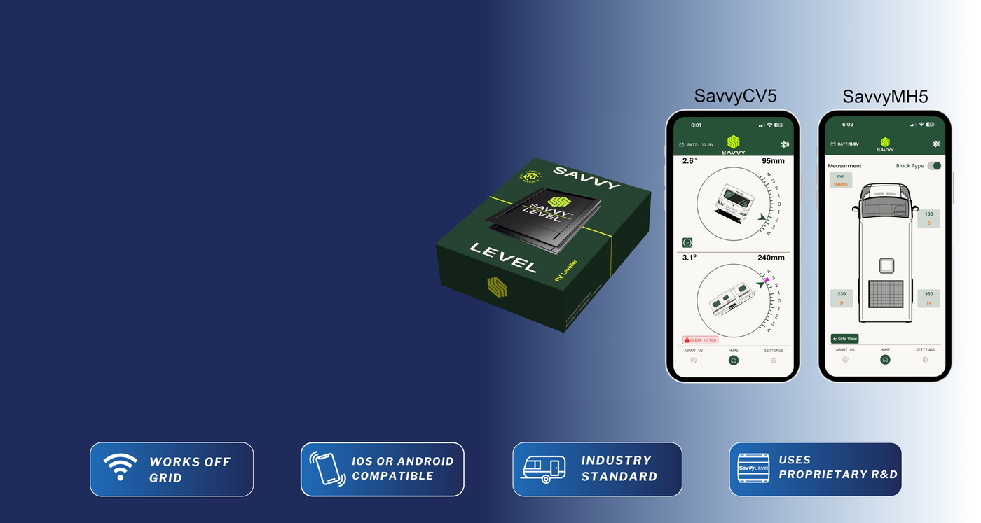✔ Provides measurements in mm/inches to level your RV with airbags & ramps